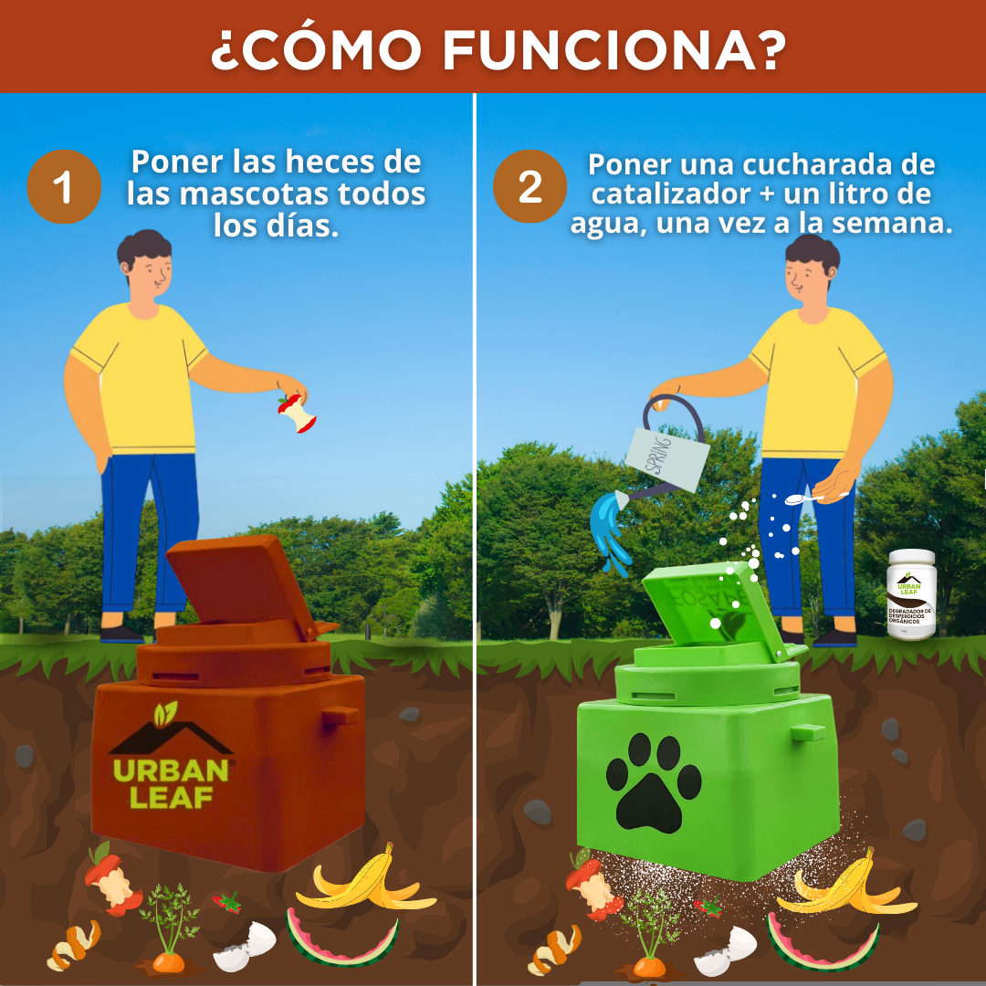 Es un contenedor que utiliza un catalizador biodegradable que convierte los desechos de tu hogar en composta para tu jardín, plantas y huertas. Elimina olores, evita fauna nociva, disminuye el tiempo de compostaje y contribuye a formar suelo. Hecho de madera reciclada, tratada contra las termitas, sellada, con recubrimiento de impermeabilización; por dentro.